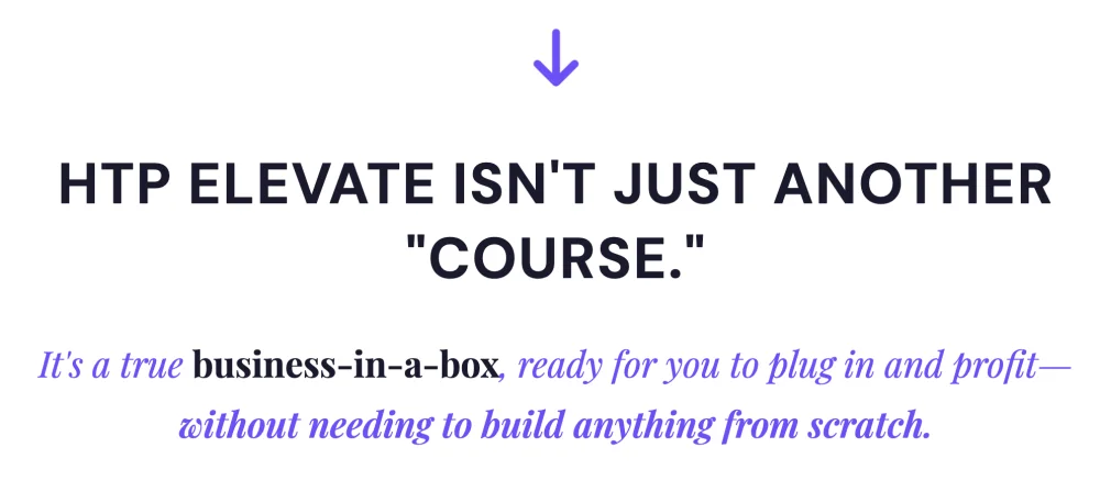Elevate by High Ticket Purpose program make no guarantee of specific financial outcomes or income results. Earnings and income representations are aspirational examples only and should not be interpreted as typical results. Success with HTP depends on numerous factors including effort, skills, and marketplace conditions, which vary among individuals. Any testimonials or examples used are exceptional results, which do not apply to the average participant and are not intended to represent or guarantee that anyone will achieve the same or similar results.